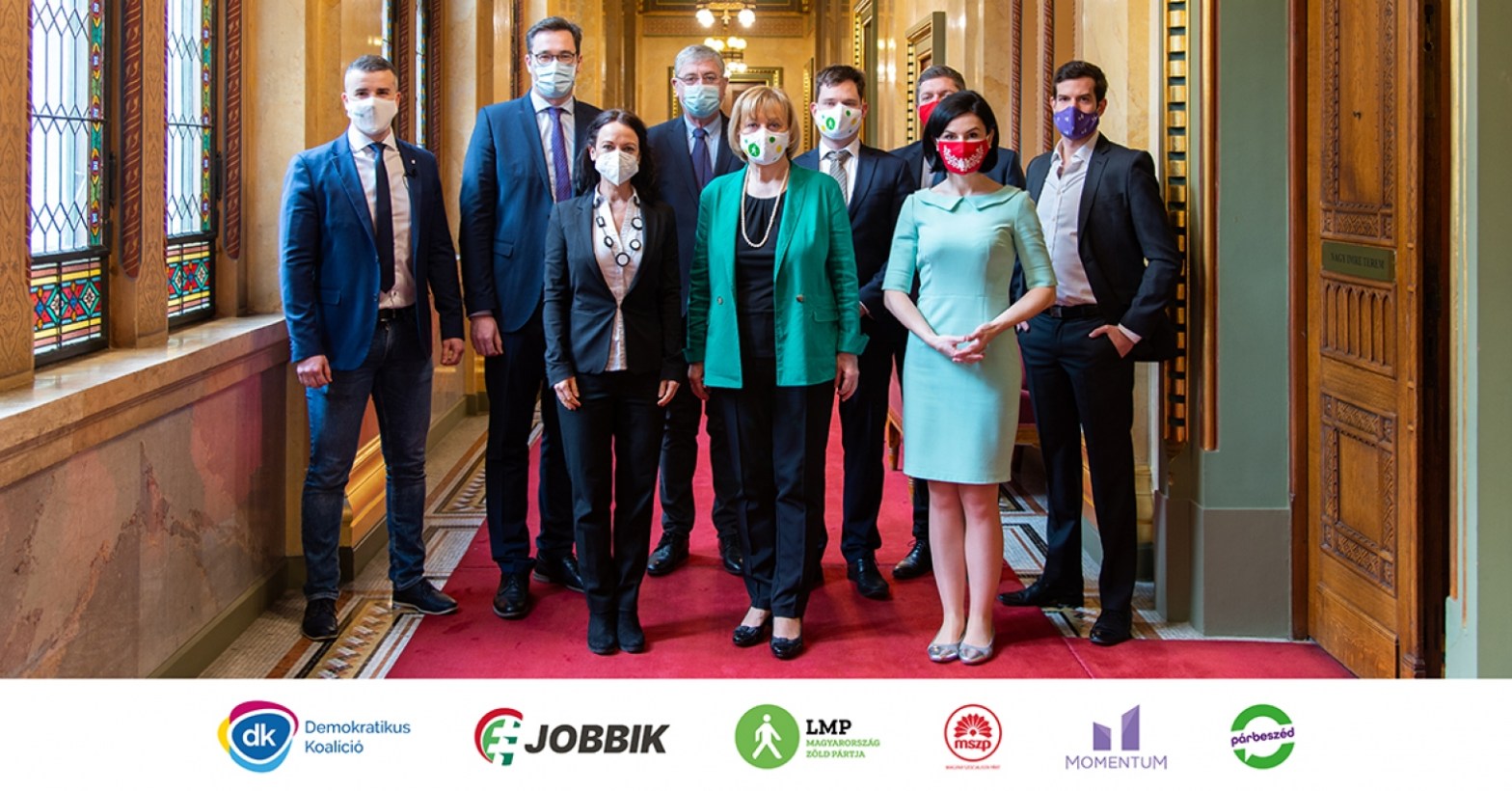 Les six partis d’opposition ont prĂ©cĂ©demment dĂ©clarĂ© qu’ils ne joindraient leurs forces qu’Ă l’organisation politique et aux candidats Ă un changement de gouvernement en 2022 qui acceptent les fondements d’une gouvernance conjointe. L’accord a Ă©tĂ© signĂ© au nom du MSzP par Bertalan TĂłth et Ăgnes Kunhalmi (coprĂ©sidents), par Ferenc GyurcsĂĄny, prĂ©sident de DK, par AndrĂĄs Fekete-GyĆr, prĂ©sident de Momentum, par TĂmea SzabĂł et Gergely KarĂĄcsony, coprĂ©sidents de Parbeszed, par PĂ©ter Jakab pour le Jobbik et par les coprĂ©sidents ErzsĂ©bet Schmuck et MĂĄtĂ© KanĂĄsz-Nagy de LMP.