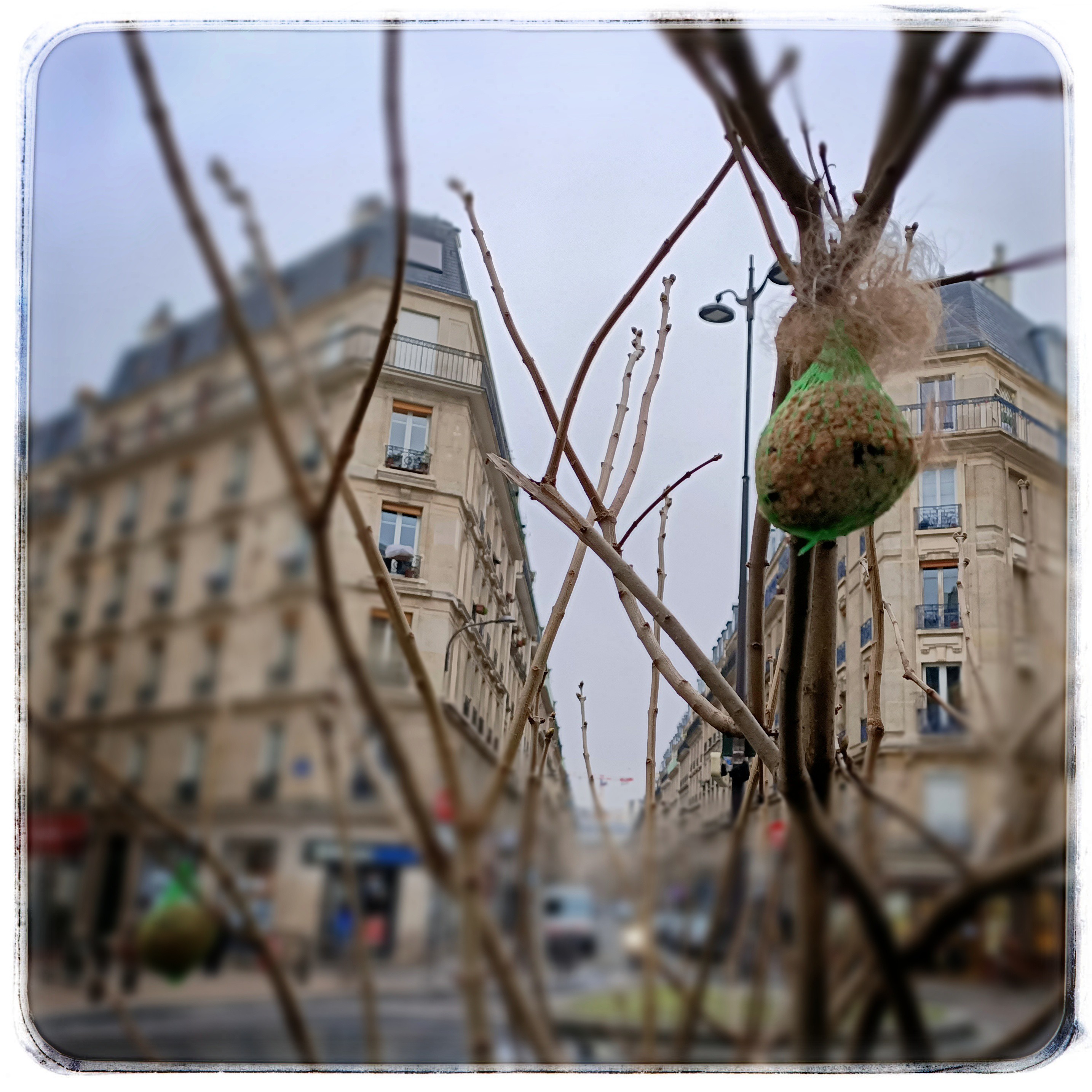 Offrir un peu de nourriture et de quoi faire à Paris un petit nid chaud et douillet : simple comme une boule de margarine et une poignée de cheveux !