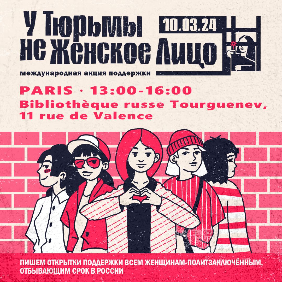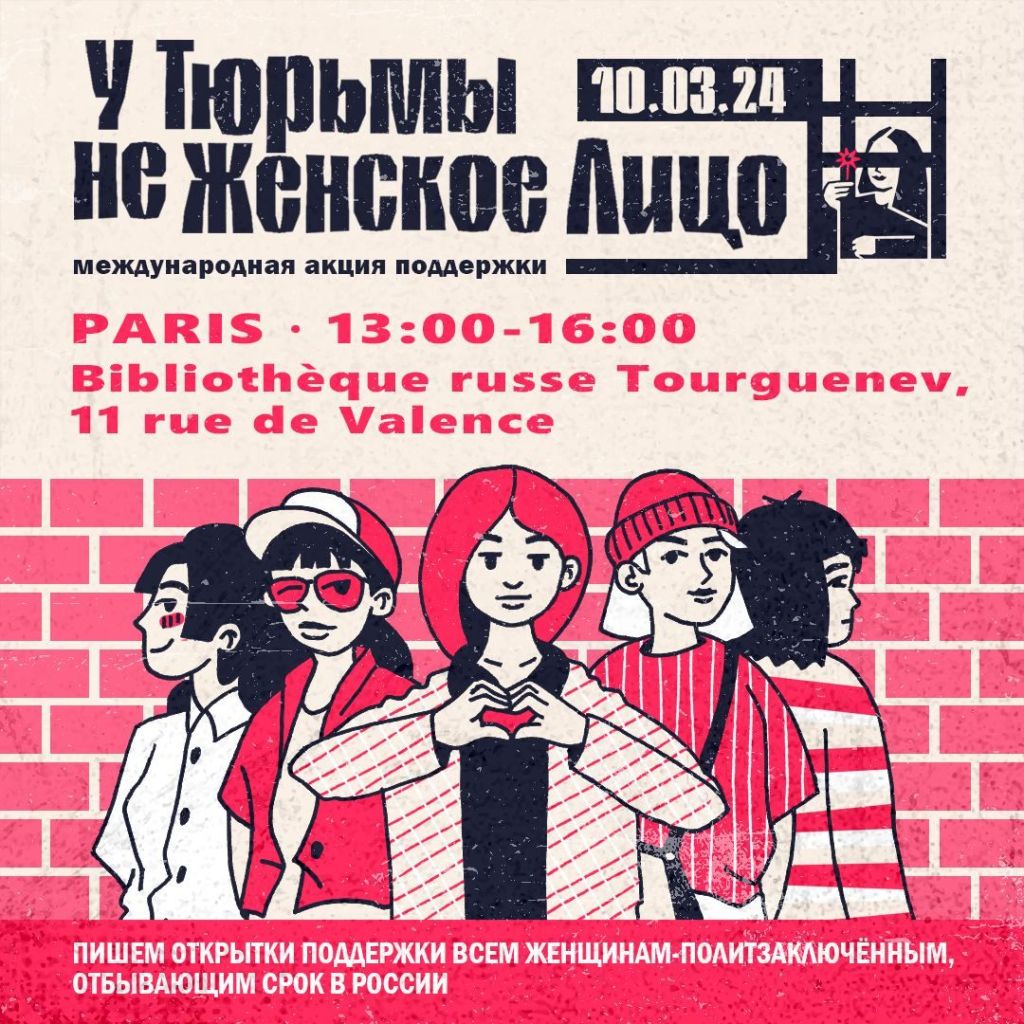 Nous vous invitons (dimanche 10 mars) Ă une rencontre de lettres et de cartes postales adressĂ©es aux femmes politiquement rĂ©primĂ©es et actuellement emprisonnĂ©es en BiĂ©lorussie et en Russie. La soirĂ©e sera accompagnĂ©e d’une conversation avec les anciennes prisonniĂšres politiques Anastasia Shevchenko, Olga Bendas et Olga Simonova.