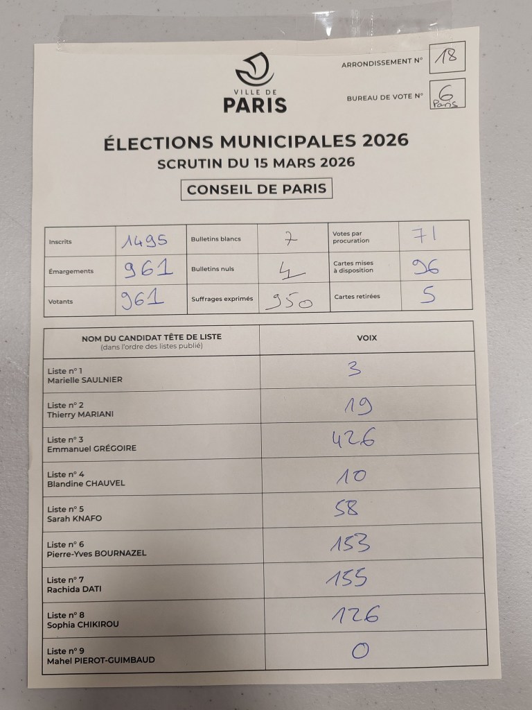 đ Pour la photo complĂšte des rĂ©sultats parisiens de ce 1er tour des Ă©lections municipales :